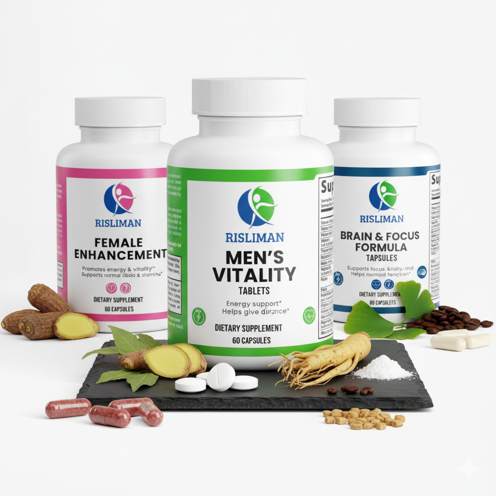Discover the complete Rislman range, meticulously formulated to elevate every aspect of your well-being. Whether you seek razor-sharp focus, robust masculine vitality, or vibrant feminine energy, our premium, science-backed supplements empower you to conquer your goals and embrace a life of optimal health and performance.